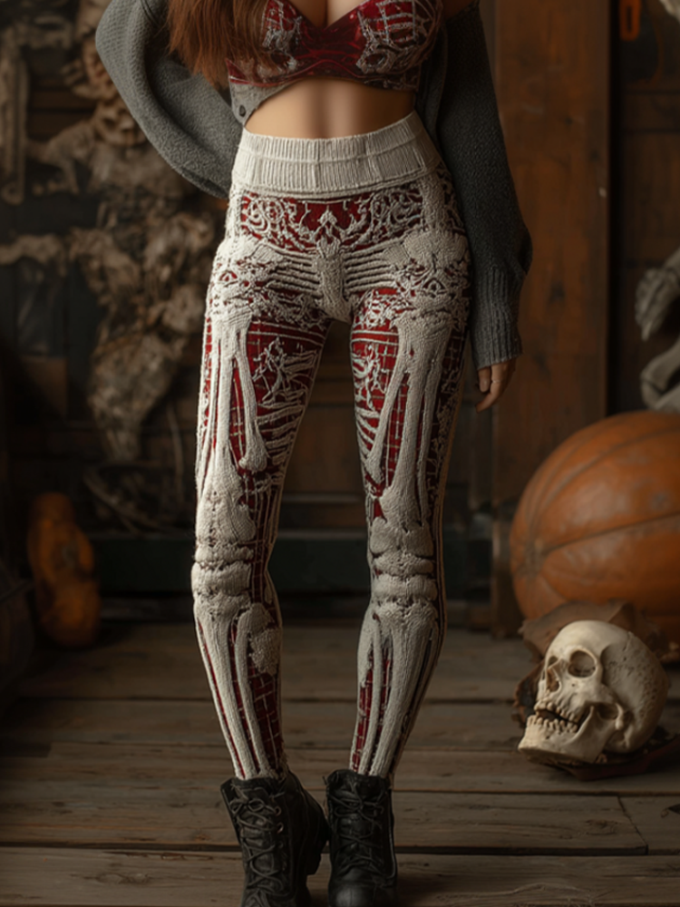 Halloween Imitation Human Skeleton And Muscle Women's Tight Knit Wool Leggings