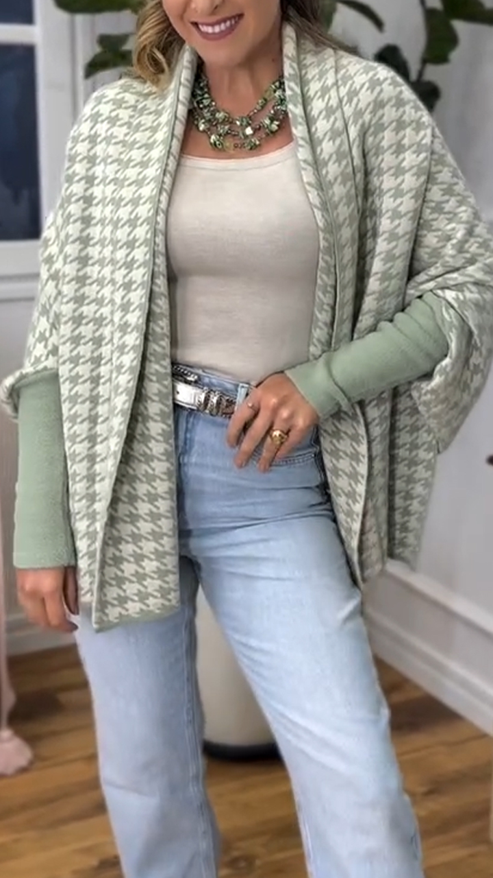 Ladies Printed Spliced Knitted Casual Cardigan