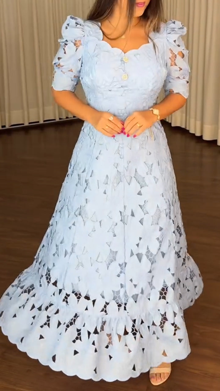 Ladies' Round Neck Hollow Printed Casual Dress