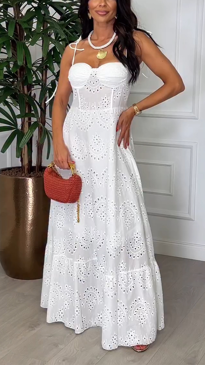 Ladies' Suspender Printed Hollow Out Elegant Casual Dress