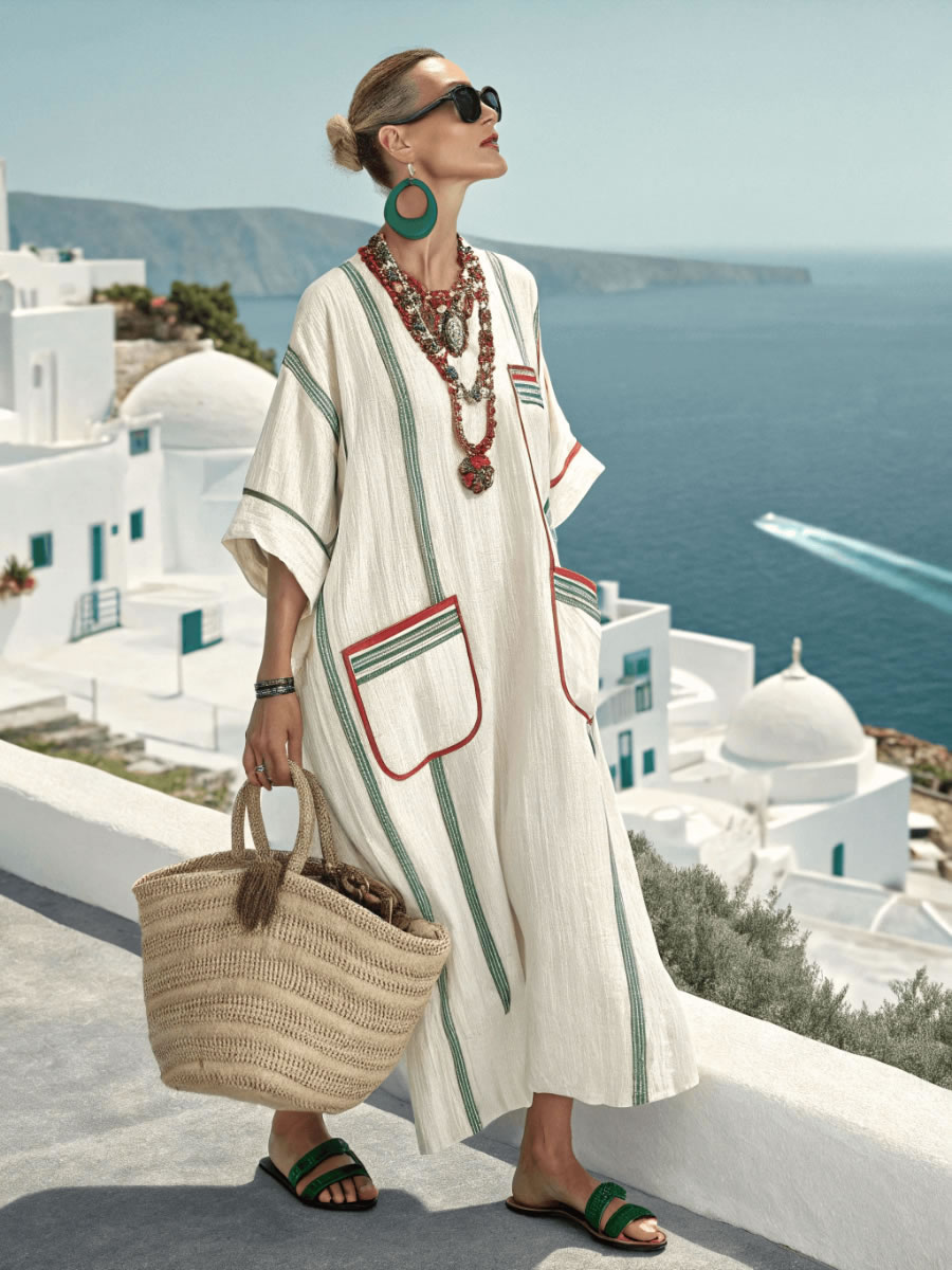 Elegant lady's cotton and linen dress - breathable and fashionable