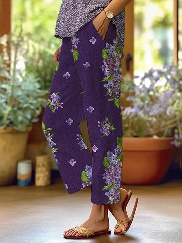 Women Floral Long Pants Casual Spring/Fall Trousers
