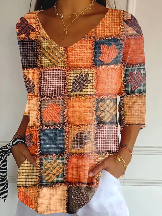 Women Halloween Three Quarter Sleeve Tee T-shirt V Neck Printing Casual Spring/Fall Graphic Tee Top