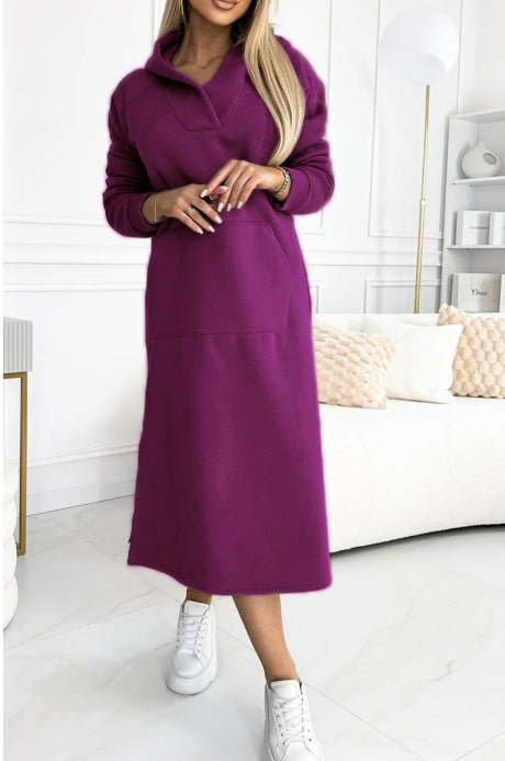 Women's Autumn and Winter Solid Color Casual All-match Long Dress with Hood