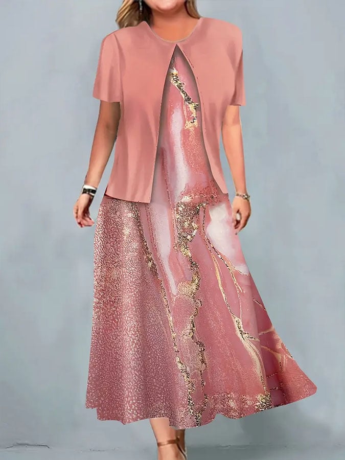 Women'S Casual Round Neck Striped Dress Set