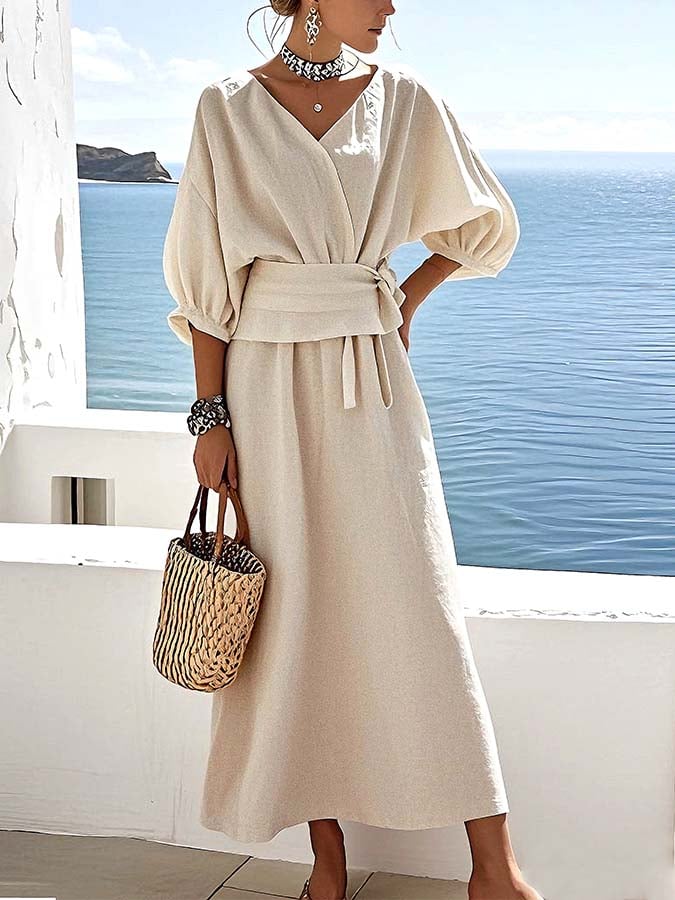 Women'S Loose Solid Color Featured Waist Dress