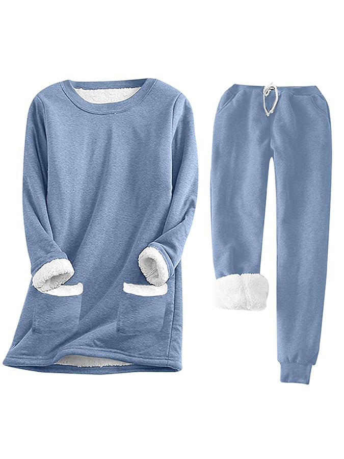 Women'S Solid Color Casual Round Neck Pocket Quilted Home Set